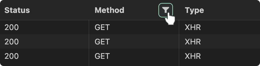 Hovering over a column header also displays a filter icon. Clicking it inserts a filter template directly into the filter input field for you.